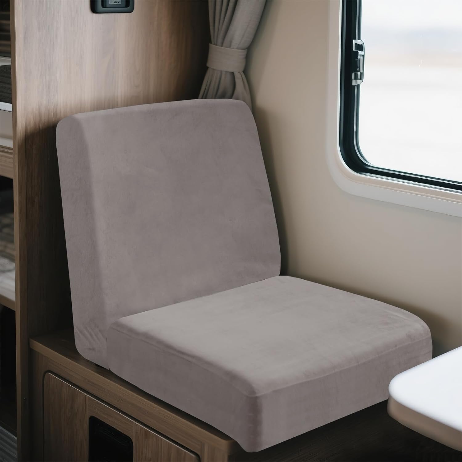 UNBBRRL Elasticizzati Copridivano Camper Velluto, Copri Dinette Camper Set (2pcs), RV Panca/auto/caravan/cuscino Divano Copertura Con 4 Cinghie (grigio chiaro,Piazza-S)